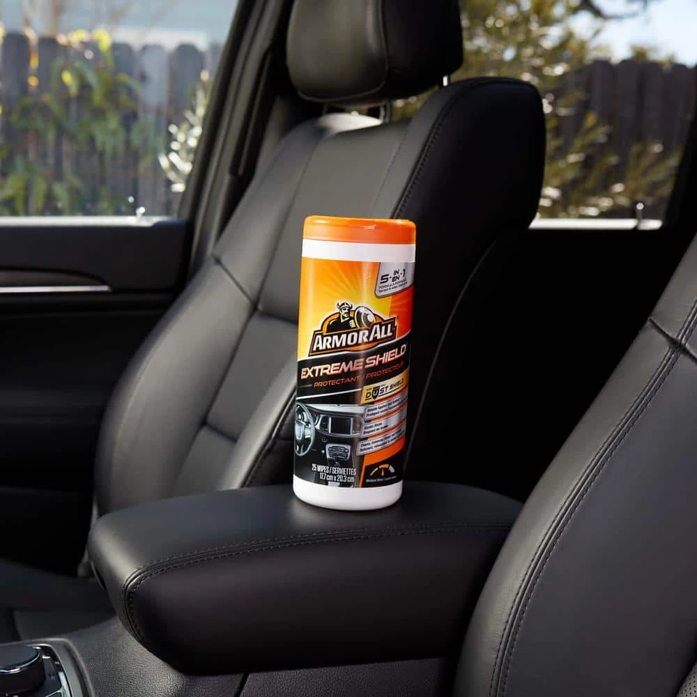 Keeping your vehicle’s interior free from dust and lint can seem like a never-ending battle. Armor All Extreme Shield Protectant will clean, shine and protect your vehicle’s interior plastic, rubber and vinyl while also helping to prevent dirt, dust and lint buildup to keep your vehicle looking cleaner, longer. Convenient, disposable wipes come with a Moisture Lock Lid that guarantees wipes will not dry out for 1-year after purchase.