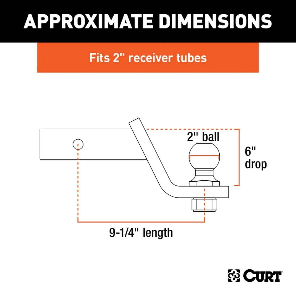 When it comes to ball mounts, a CURT loaded ball mount is the complete package. These stingers come with all necessary towing components and are pre-fitted with a factory-torqued trailer ball, eliminating the need to mount and torque your own trailer ball. This means a loaded ball mount is ready for towing right out of the package. Each 1 also comes with a pin and clip for mounting the ball mount into the appropriate size receiver tube. CURT offers loaded ball mounts in a variety of styles and weight ratings. This CURT loaded ball mount features a gross trailer weight capacity of 7,500 lbs. and a tongue weight capacity of 750 lbs. It comes with a 2 in. trailer ball, making it an excellent choice for towing most boat trailers, utility trailers, campers, livestock trailers and recreational vehicle trailers used for hauling dirt bikes, motorcycles and ATVs (NOTE: Never exceed the lowest weight capacity of any towing component, i.e. the vehicle, hitch, trailer, etc.). This ball mount also has a length of 9-1/4 in. , a drop of 6 in. and comes with a gloss black powder coat finish to resist rust, chipping and UV damage. All CURT loaded ball mounts feature 2 in. x 2 in. shanks and are made with the same superior quality we put into each of our products.
