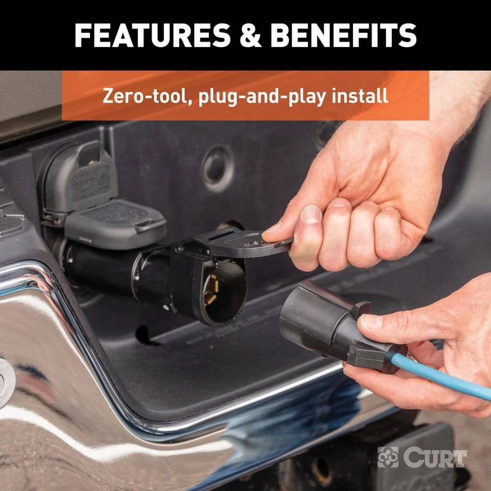 - Zero-tool, plug-and-play install between vehicle-trailer 7-way connectors