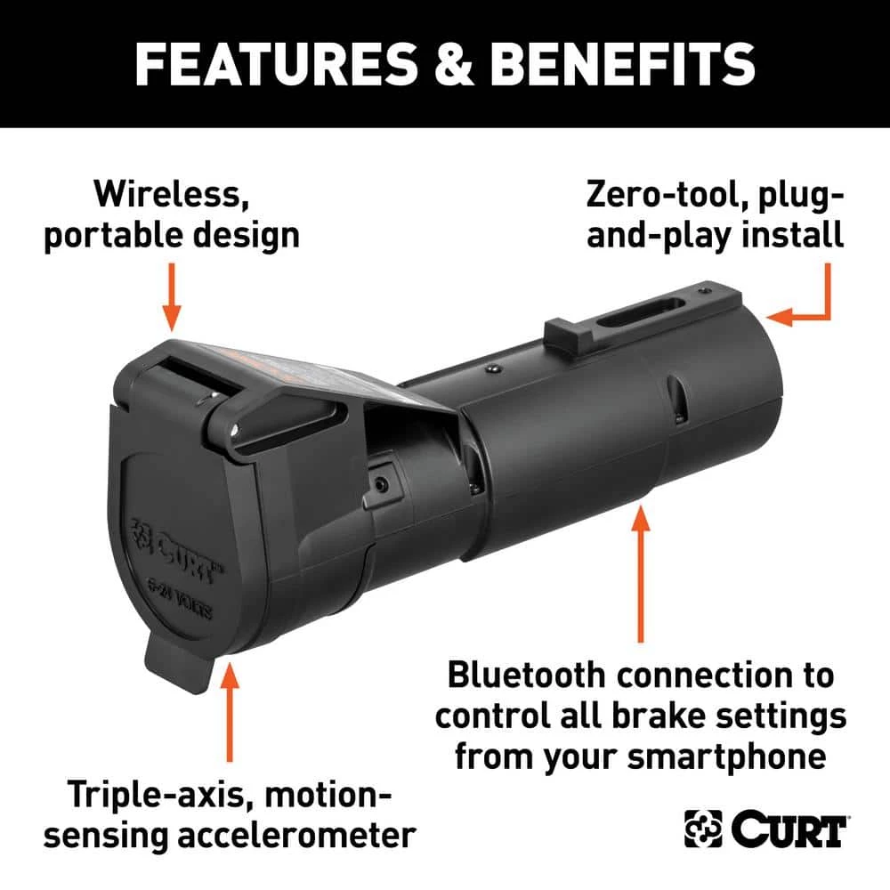 The CURT Echo mobile brake control is a Bluetooth-enabled brake control device that wirelessly connects to your smartphone and allows you to control and monitor all trailer brake activity right from your own device. It features a simple, plug-and-play installation on your vehicle inserting between the 7-way vehicle-trailer wiring connection. It also features a portable design to easily switch between vehicle-trailer combinations and a highly durable construction to outlast the elements.