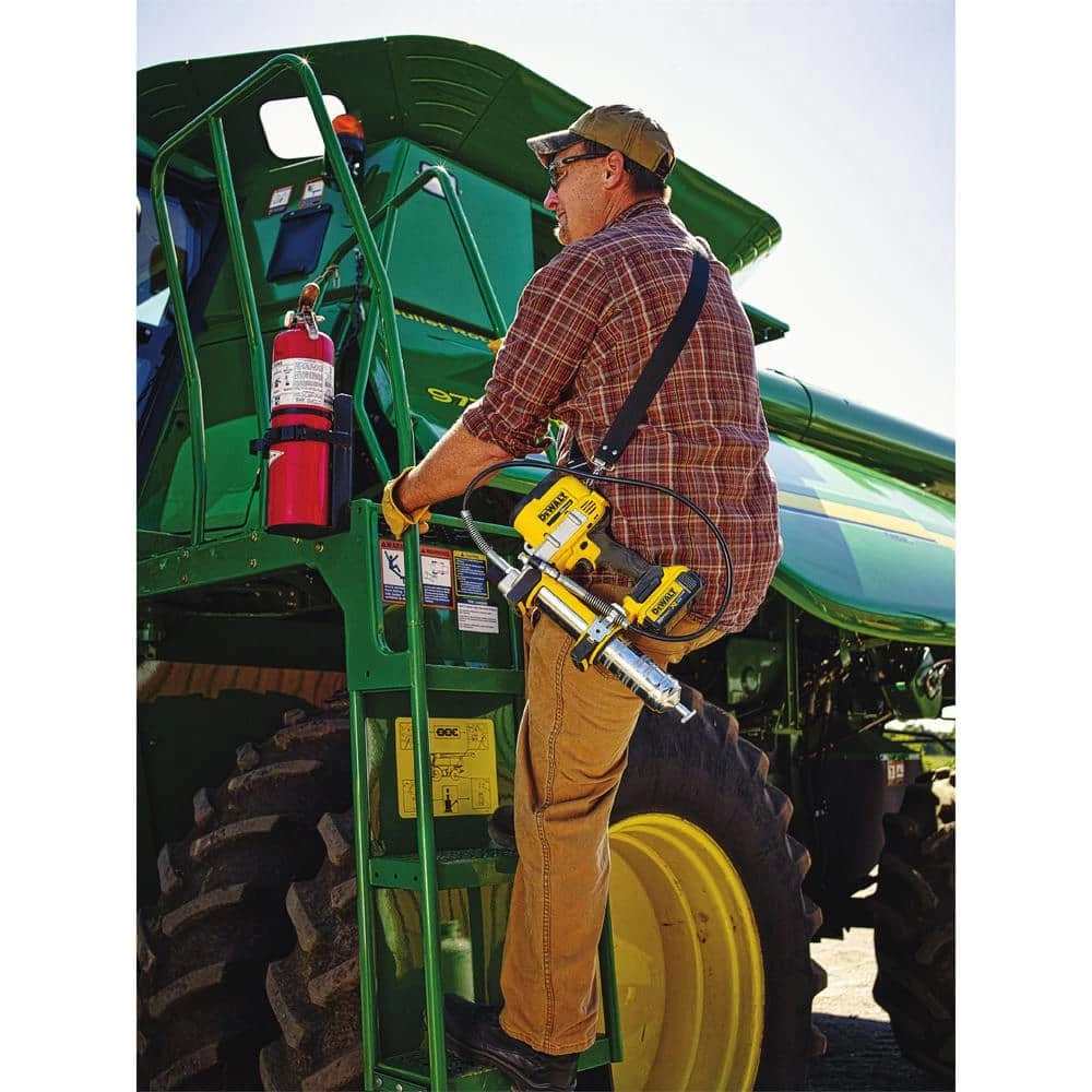 - DEWALT DCGG571B has a 42 in. extra-long and flexible hose designed for reaching hard-to-access grease fittings