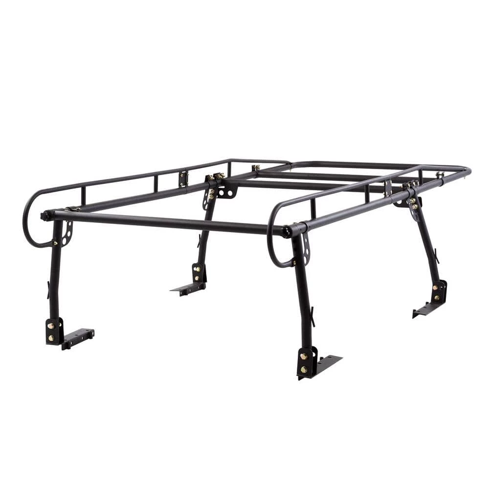 Free up your truck bed and make extra cargo space on the roof of your pickup truck with the Elevate Outdoor Universal Truck Rack (formerly Apex). Boasting an impressive 800 lbs. weight capacity, this over-the-cab utility rack is a safe and secure way to transport long loads, including ladders, drywall, pipes, and even taller cargo thanks to a removable crossbar. Integrated 5 in. side rails and 1 in. tubing ensure that you’ll have plenty of tie-down points. Installation onto your truck bed rails is easy and doesn’t require drilling thanks to included universal mounting hardware. The universal truck rack can also be permanently mounted to the bed rails by drilling into the truck and securing it with hardware (not included). Please Note: Universal design fits all pickup trucks except step-sides.