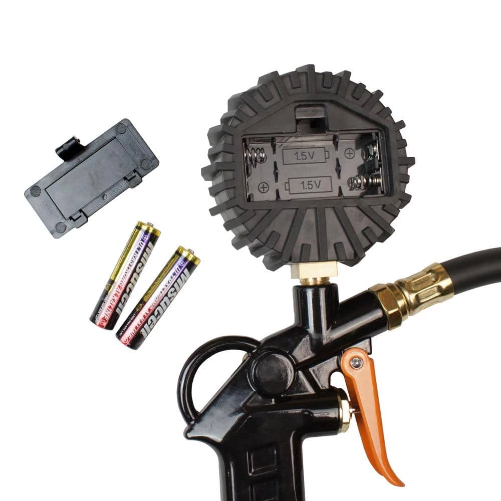 Expand the life of your ties and optimize your gas mileage with the Freeman FATDTI Digital Tire Inflator with LCD Pressure Gauge. It makes it easy to frequently check the pressure of your tires. Simply connect the inflator to your tires using the brass clip-on chuck to measure pressure in increments of 0.1 PSI or switch to KPA, Bar or Kg/sq.cm. When used alongside a pneumatic compressor, you can refill tires with an accuracy of +/- 1 PSI. The lock-on brass chuck adds a secure attachment to prevent air leakage, and the 20 in. flexible rubber hose and swivel hose connector make it easy to use the inflator in tight spaces. Squeeze the pistol-style trigger to inflate your tires or release pressure by pressing and holding the pressure release valve until your reach your desired pressure. The Digital Tire Inflator with LCD Pressure Gauge is constructed of a durable, lightweight aluminum alloy and includes a rust resistant brass 1/4 in. NPT fitting and two AAA batteries.