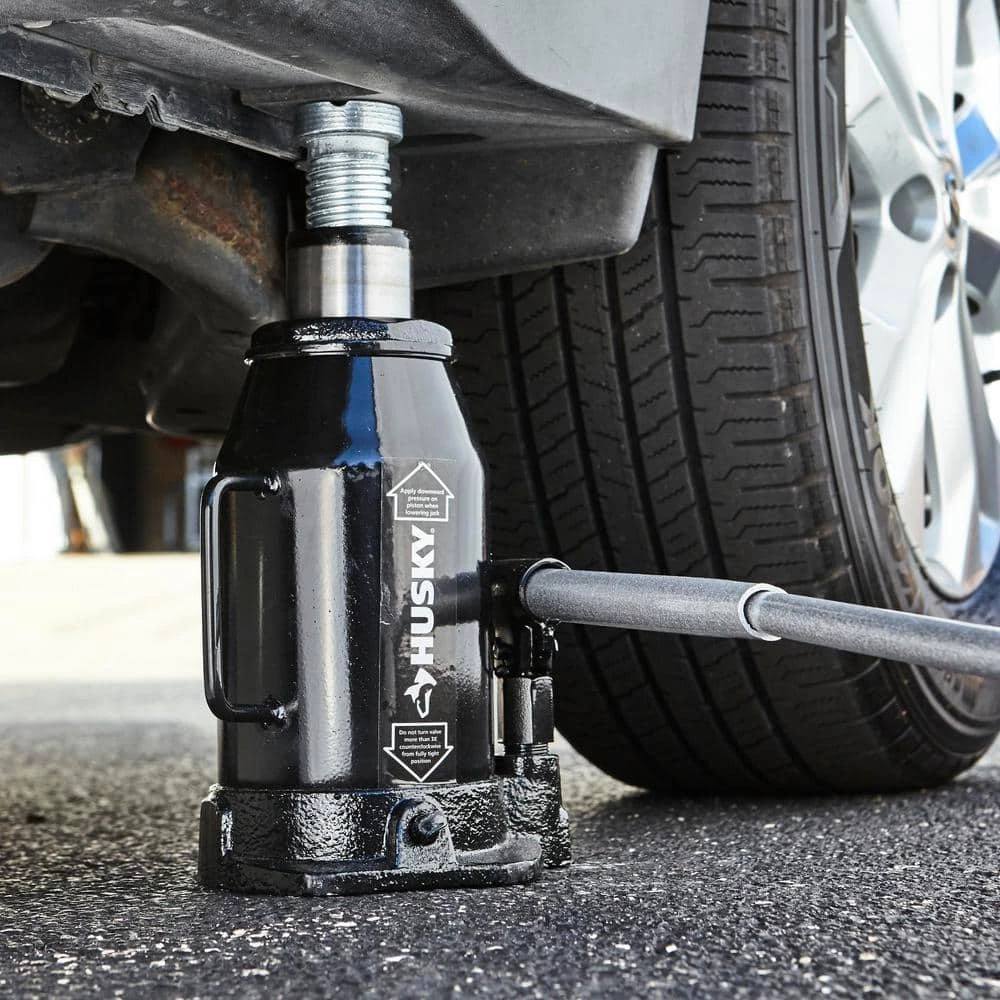 This 20-Ton Bottle Jack from Husky is perfect for industrial, automotive and construction jobs. Each jack has a 40,000 lb. lifting capacity with a range of 9.5 in. to 17 in. Made from heavy duty iron, the base is designed to withstand even the toughest of jobs. Features an adjustable load saddle. This jack is the perfect addition to your Husky collection.