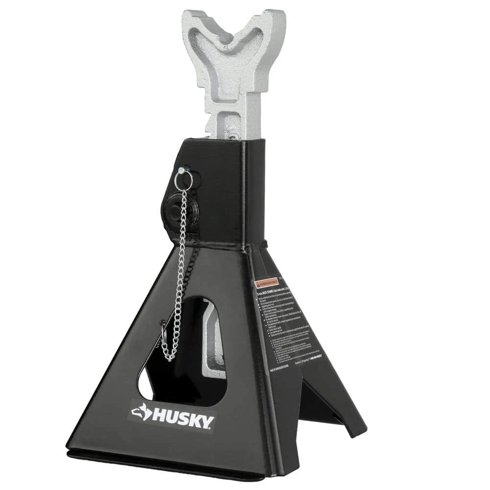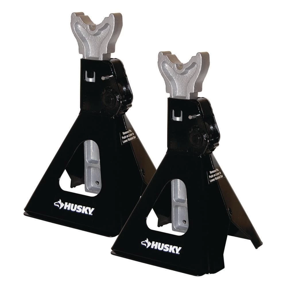 The 6-Ton Jack Stands from Husky are ideal for SUVs, light trucks and standard automobiles. Each jack stand has a 3 ton lifting capacity with a total lift capacity of 12,000 lbs combined. The jack stands feature an adjustable load saddle with a lifting range of 12 inches to 17.5 inches. Each stand is designed with a locking pin and anti-sink feet for safety and are made from heavy duty steel for maximum durability.