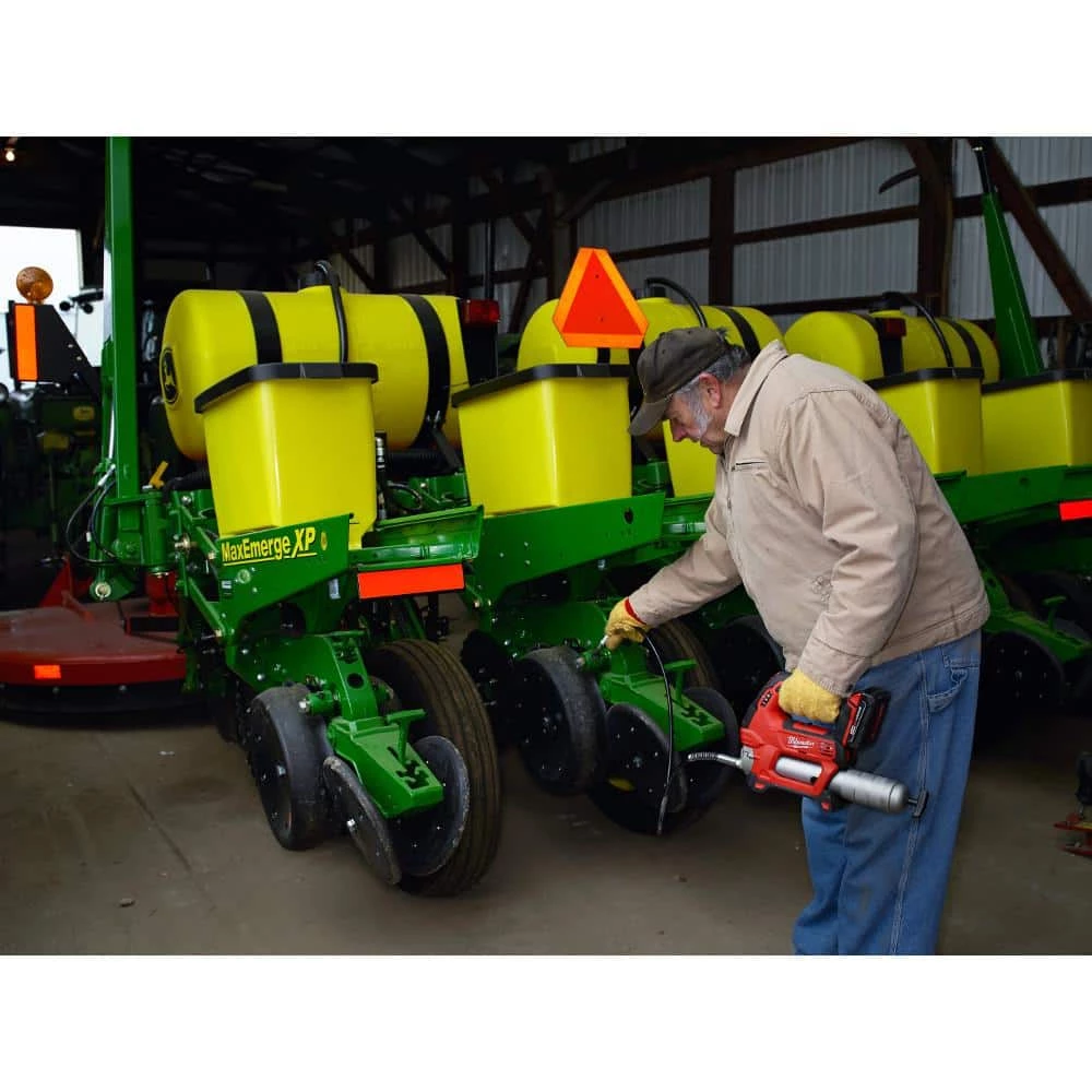- Includes 2646-20 M18 2-speed grease gun, 48-11-1815 M18 REDLITHIUM compact battery, M18/M12 multi-voltage charger, carrying case, shoulder strap, 48 in. flex hose with spring guard and high-pressure grease coupler