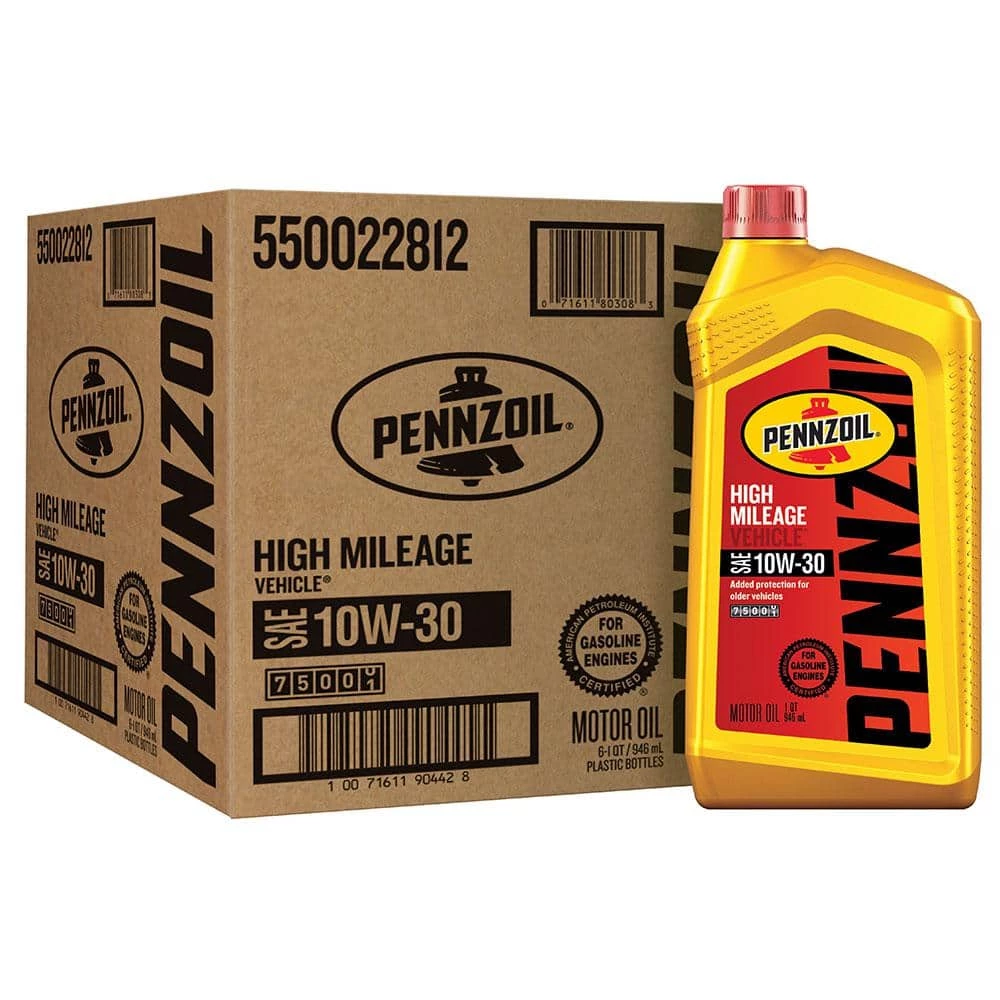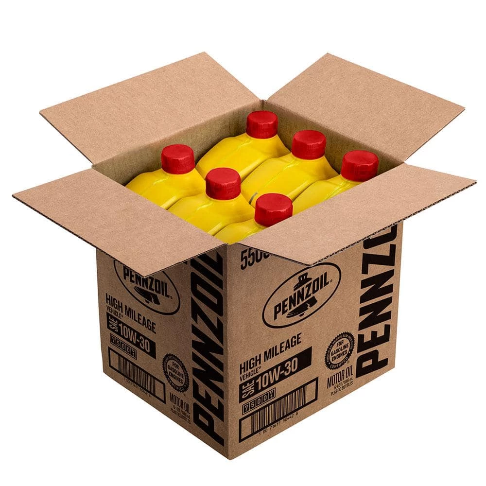 Pennzoil High Mileage SAE 10W-30 Motor Oil is engineered for cars that have accumulated more than 75,000 miles, particularly those that are experiencing oil leaks and oil burn off. Engines with higher mileage tend to experience more wear than new engines. As your car ages, leaks may develop and cause higher oil consumption and burn off which is why your engine might be needing frequent top-offs. Severe oil consumption and oil burn off may also cause other issues, leaving deposits on the internal parts of your engine. This could be due to dry or cracked seals. Pennzoil High Mileage motor oil is enhanced with an outstanding combination of special conditioning seal agents and additives to help stop leaks from aging seals and reduce the oil consumption that is typical of older and worn engines.
