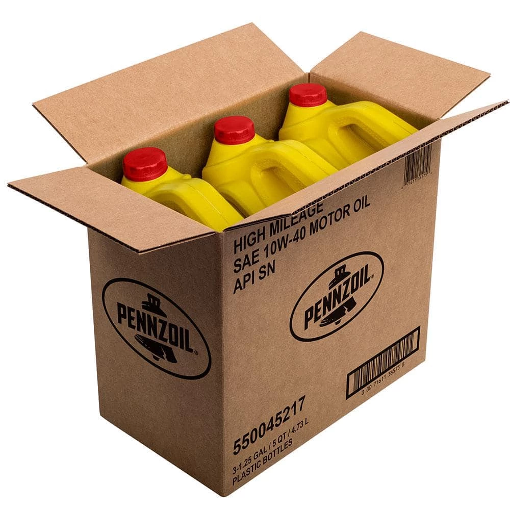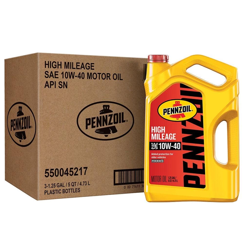 Pennzoil High Mileage SAE 10W-40 Motor Oil is engineered for cars that have accumulated more than 75,000 miles, particularly those that are experiencing oil leaks and oil burn off. Engines with higher mileage tend to experience more wear than new engines. As your car ages, leaks may develop and cause higher oil consumption and oil burn off which is why your engine might be needing frequent top-offs. Severe oil consumption and oil burn off may also cause other issues, leaving deposits on the internal parts of your engine. Pennzoil High Mileage motor oil is enhanced with an outstanding combination of special conditioning seal agents and additives to help stop leaks from aging seals and reduce the oil consumption that is typical of older and worn engines.