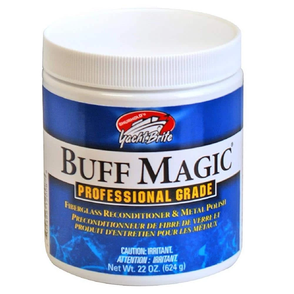Buff Magic is scientifically formulated with jeweler’s rouge to be a metal polish, as well as a buffing and polishing cream. This unique formula changes as you use it. With each pass of a buffer or hand polishing the proprietary abrasives in this compound break down smaller and smaller. This effectively creates a compound that can work your finish from very dull to ultra-glossy with just 1 product. Additionally, since you do not have to switch products, this will save you time and money. Buff Magic removes: oxidation, gel coat staining, surface rust, tarnish, Plexi-glass scratches, P800 and finer DA scratches. Buff Magic is perfect for: boats, cars, RV’s, pots and pans, acrylic tubs and showers and much more. Buff Magic has been formulated to be user friendly whether buffing by machine or hand. It is also an ideal metal cleaner and polisher for steel, aluminum, brass, bronze, copper, gold and other precious metals. Buff Magic is a NMMA Innovation Award Winner. Instructions: HAND Application apply sparingly with damp cloth over surface. Hand buff until residue appears. Then remove residue by buffing with a soft dry microfiber cloth.