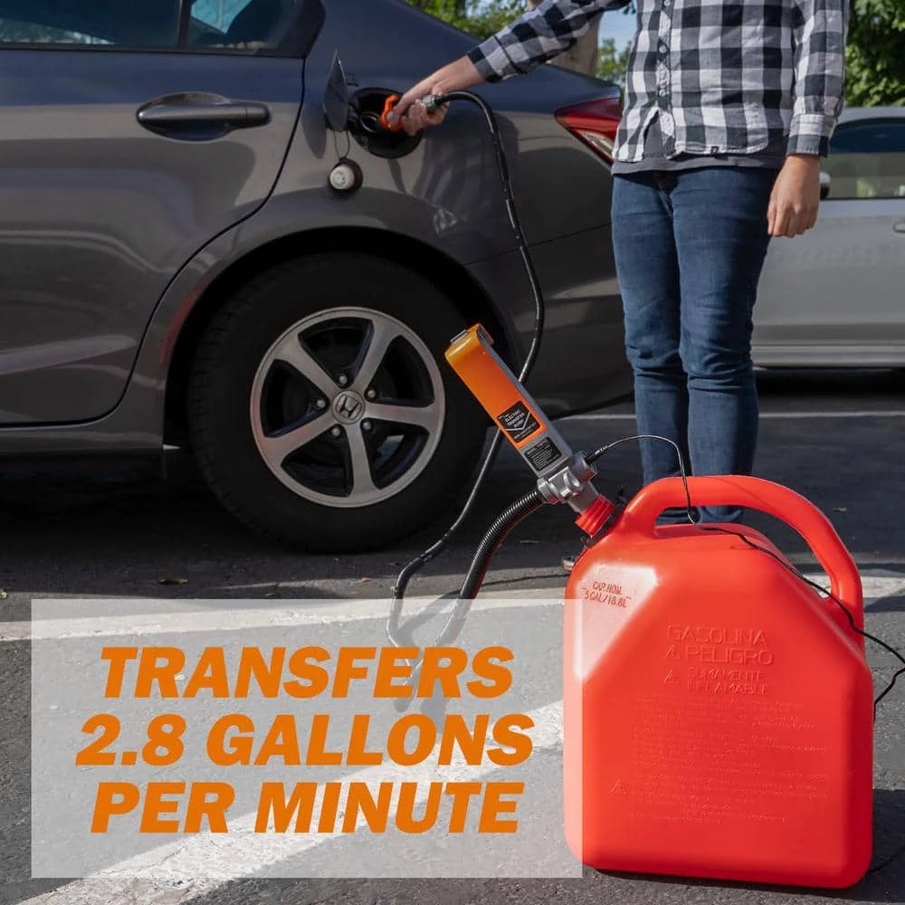 The TeraPump TREP03 is an electric fuel transfer pump for use in the garage, field, shop, or anywhere else where fuel needs to be transfered. With a powerful DC motor, the TREP03 can discharge liquids up to 2.8 GPM. The extended 8 ft. discharge allows you to pump into hard to reach places. Our Total Flow Control Nozzle provides a clean and easy transfer saving time and energy.
