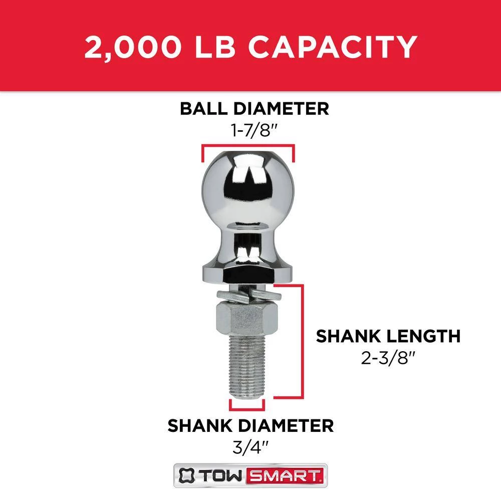 The TowSmart Hitch Ball is a key component to create a secure connection between your vehicle and trailer when towing your valuable assets. The heavy-duty construction is extremely durable with a chrome plated finish that is corrosion resistant. The hitch ball provides wrench flats for easy positioning in the X-mount lockrail system. The lockrail functions as a built-in wrench preventing hitch ball rotation during installation or removal. The wrench flat design is universal to be used with any standard ball mount. It is important to know the total weight of the trailer (GTW) you are towing and the maximum towing capacity determined by the vehicle manufacturer.