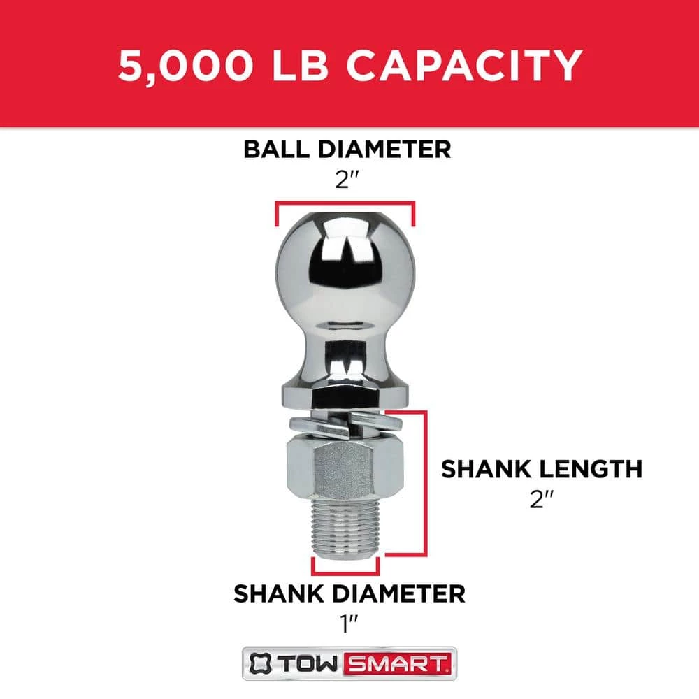 The TowSmart Hitch Ball is a key component to create a secure connection between your vehicle and trailer when towing your valuable assets. The heavy-duty construction is extremely durable with a chrome plated finish that is corrosion resistant. The hitch ball provides wrench flats for easy positioning in the X-mount lockrail system. The lockrail functions as a built-in wrench preventing hitch ball rotation during installation or removal. The wrench flat design is universal to be used with any standard ball mount. It is important to know the total weight of the trailer (GTW) you are towing and the maximum towing capacity determined by the vehicle manufacturer.