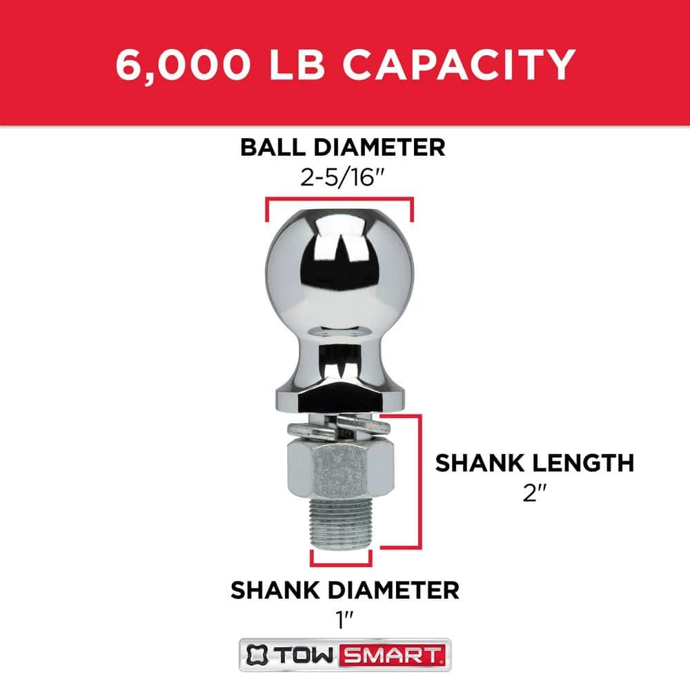 TowSmart Class 4 6,000 lb. 2-5/16 in. Ball Diameter, 1 in. Shank Diameter, 2 in. Shank Length Chrome Trailer Hitch Ball