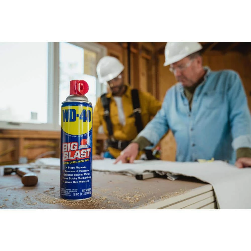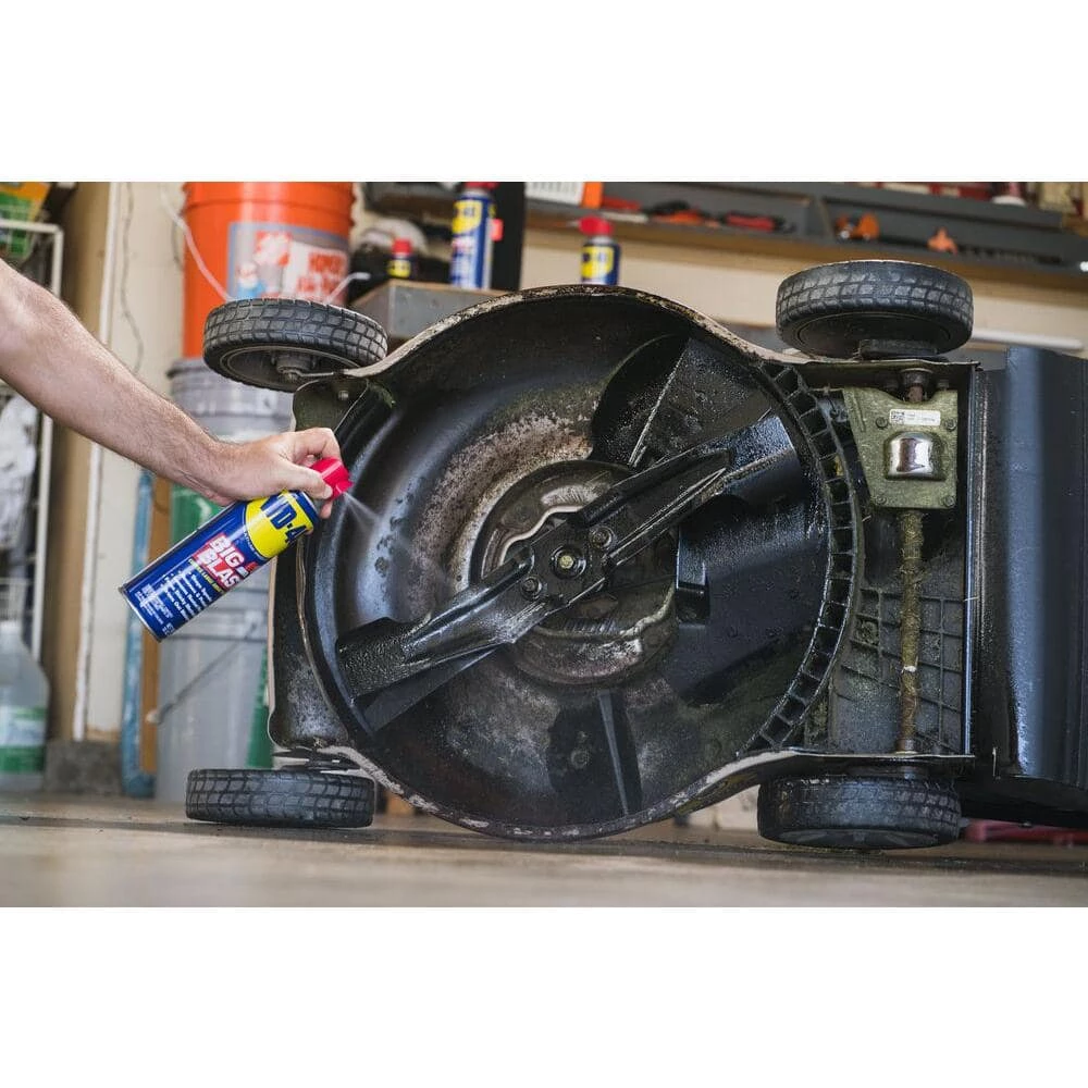 WD-40 Big-Blast Features a wide-area spray nozzle, designed to deliver product quickly and efficiently over large areas. Dries electrical systems, protects and lubricates while driving out moisture. Prevents rust and keeps dirt and debris from sticking. Great for lawn mowers, engines, tractors, large equipment, wheelbarrows, recreational vehicles, and snow shovels.