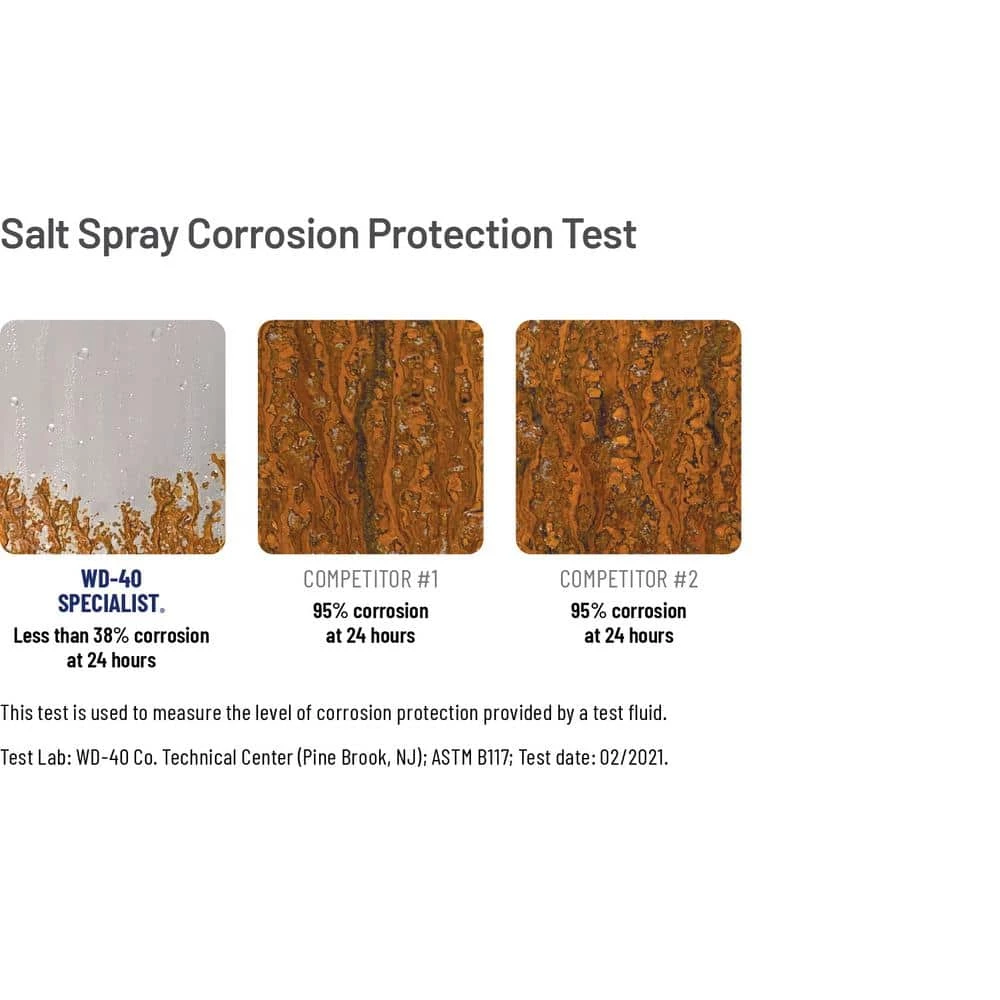 - **Test Lab: WD-40 Co. Technical Center (Pine Brook, NJ); ASTM B117; Test date: 02/2021.