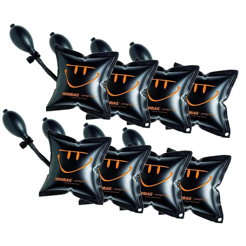 The Original Winbag-pump it up. The Winbag inflatable air cushion is an innovative alignment tool that can replace shims and wedges when leveling and installing windows, doors, kitchen cabinets, and household appliances. Unlike wooden shims and plastic wedges that can mar surfaces, the Winbag air wedge doesn’t leave marks and is gentle on its surroundings. The Winbag’s inflatable air cushion is made of fiber reinforced material that is durable enough to be used time and time again. Its very powerful, hand operated pump gives the Winbag a maximum load of 300 lbs. per bag. Accomplish larger jobs by adding another Winbag to increase capacity. The Winbag spans gaps from 3/32 in. to 2 in. with infinite adjusting possibilities and deflates at the touch of a button. The Winbag can even be used to level furniture around the house or as an effective door stopper. With the Winbag, a single professional installer can position, adjust, align, level and hold work materials in place, saving time and reducing costs.
